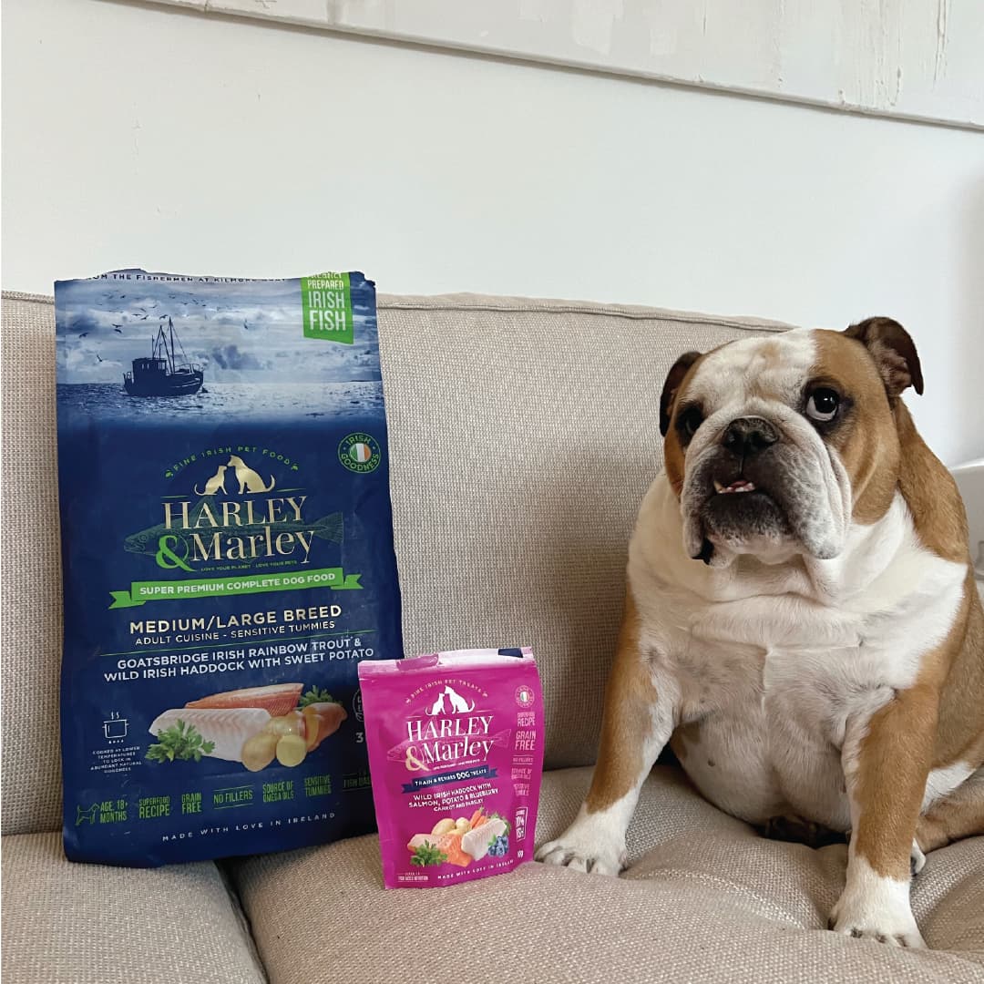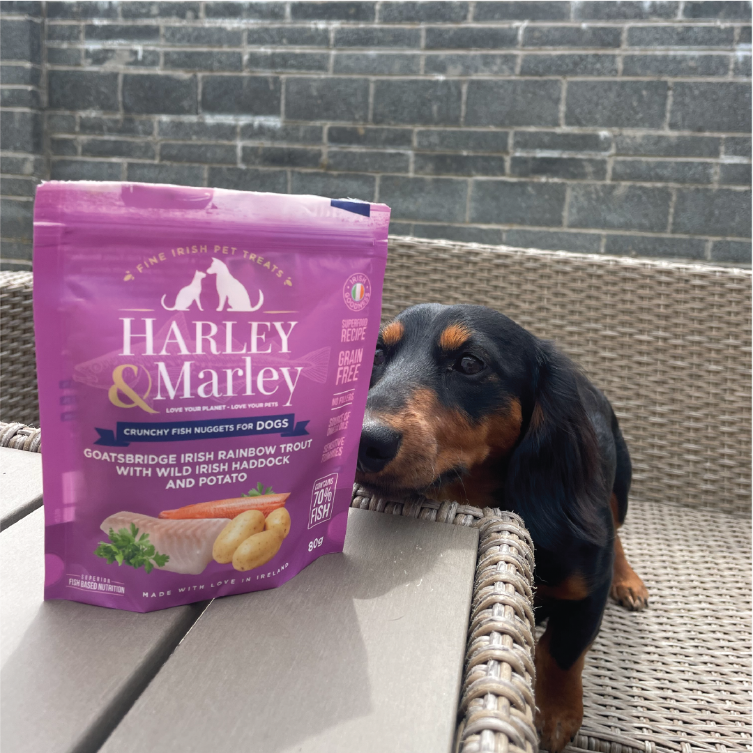 Harley & Marley complete dog food is made up of freshly prepared ingredients including fresh fish from the fishermen at Kilmore Quay. We take the offcuts of this fresh fish from Atlantis Seafood in Wexford & cook it at lower temperatures to lock in the abundant natural goodness. Our 70% fresh fish treats are air dried to lock in the goodness in these.