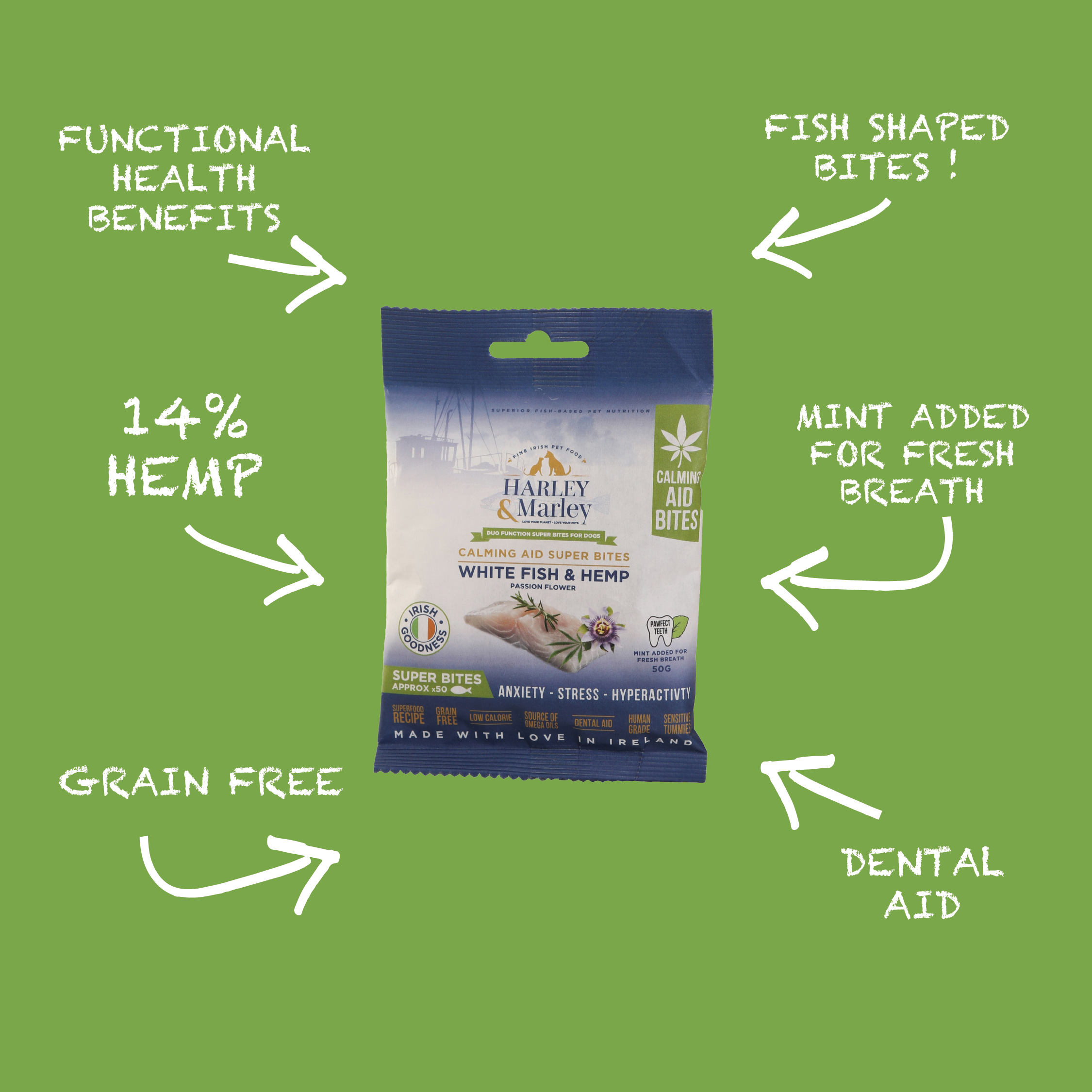 Aside from the functional health benefits mentioned above, these Harley & Marley Functional Health Bites also support Healthy Teeth and Gums, as well as Fresh Breath. Packed with Natural Goodness, they are Grain-Free, Low Calorie, Human Grade and contain No Added Sugar or Artificial Flavours or Colourings. There are only 3 Calories in each Super Bite and they make a great and convenient training treat for when you are on the go without guilt or fear of building bad habits by feeding low quality treats. We are confident your fur babies will enjoy our 100% Natural Functional Health Bites Made with Love in Ireland.